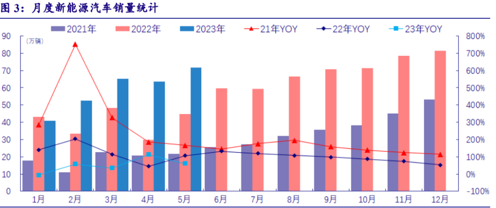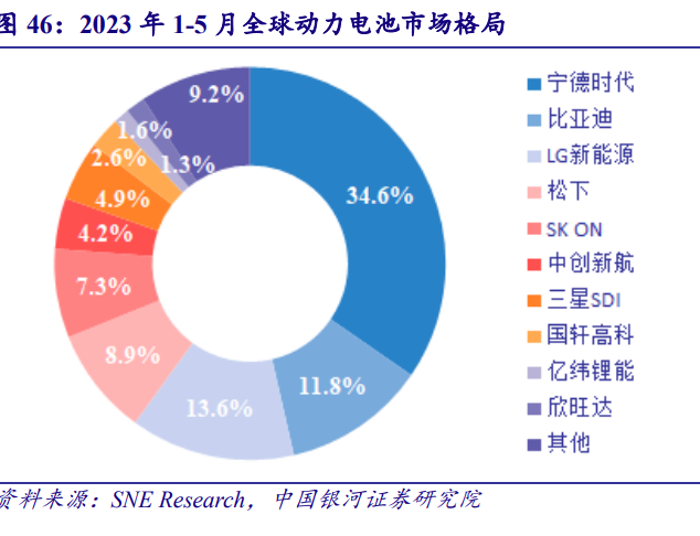 一、锂电池市场空间长期向好 (一)新能源车价格战收官,需求爆发指日可待 2023 年伊始,特斯拉率先打响价格战。1 月 6 日,特斯拉下调旗下 Model 3、Model Y 国 产车款价格。其中,Model 3 降价 2 万-3.6 万元,降幅 5.7%-13.5%,Model Y 降价 2.9 万-4.8 万元,降幅 9.6%-13.4%。此次调整是继 2022 年 10 月后的又一次国产车型全系降价,且降价 幅度历史最大、降价后产品价格创历史新低。 特斯拉海外市场同步降价。2023 年 1 月 6 日,日本、韩国和澳大利亚市场同步下调价 格。一周后,美国、欧洲市场官宣降价,其中挪威市场降幅最高,达 23.1%。销量压力之大 可见一斑。 “以价换量”策略奏效,逆转全球销量颓势。2023 年 1 月,公司财报电话会披露,降价 后新增订单几乎是生产速度的 2 倍。自 2022 年 10 月实行降价策略以来,特斯拉全球销量节 节攀升,22Q4/23Q1/23Q2 公司全球销售 405,278 辆/422,875 辆/466,140 辆,同比增长 31%/36%/83%,其中 23Q2 产销量创历史新高。 “鲶鱼效应”倒逼新能源车品牌跟随。1 月降价后,特斯拉主销产品价格带下探至 25 万元附近,对相同档位的车款产生强有力的竞争优势,倒逼其他品牌车企跟随降价。比亚 迪、问界、小鹏等车企迅速反应,降价平均幅度在 10%-13%之间,最高降幅达到 30%。 迫于库存压力,燃油车加入混战。5 月生态环境部、工信部等联合印发《关于实施汽车 国六排放标准有关事宜的公告》,明确国六排放标准 6B 阶段将从 7 月 1 日起开始实施,届 时将禁止生产、进口、销售不符合该标准的汽车。据中汽协报告,截至 1 月底,不满足要求 的库存车辆超过 189 万辆。在如此之巨大的清库存压力之下,燃油车企加入降价大军,并且 促销力度更大。东风雪铁龙 C9 直降 43%,奥迪、宝马等豪华品牌部分车型降幅超 10 万元。 降价助力新能源汽车销量强势复苏。尽管存在燃油车抢销量等不利因素,但新能源车降 价带来的促销量效应依旧明显。据中汽协数据,降价高峰期 2 月新能源车销量环比+28.7%, 历史首次出现 2 月环比正增长,完全逆转 1 月同环比双降的颓势,同比增速亦高达+57.3%。 新能源车销量在后续 3 个月稳步增长,同比增速均超过 30%,2-5 月同环比增长均优于燃油 车,降价带动的销量复苏明显强于燃油车。 本轮价格战收官。首先,新能源汽车降价的车型数量和幅度逐步缩小。第二,据中国汽 车报披露,国六 A 车型库存大规模出清基本完成,后续无强降价动力。再者,车市逐渐进入 三季度销售旺季,销售策略以及促销手段也会相应做调整。 政策暖风频吹,开启新一轮黄金增长期。政策组合拳从基建、优惠、免税三大维度,试 图加速开启下沉市场通道,预计将有效带动新能源车销量增长,起到正面积极作用。 1)基础设施方面,5 月 17 日,发改委能源局发布《关于加快推进充电基础设施建设更 好支持新能源汽车下乡和乡村振兴的实施意见》,提出“适度超前建设充电基础设施,优化 新能源汽车购买使用环境”,加快实现适宜使用新能源汽车的地区充电站“县县全覆盖”、 充电桩“乡乡全覆盖”。5 月 19 日,国务院印发《关于进一步构建高质量充电基础设施体系 的指导意见》,提出 2030 年基本建成覆盖广泛、规模适度、结构合理、功能完善的高质量充 电基础设施体系。 2)消费优惠方面,6 月 8 日,商务部发布《关于组织开展汽车促消费活动的通知》,安排“百城联动”汽车节和“千县万镇”新能源汽车消费季。6 月 15 日,工信部等五部门发布 《开展 2023 年新能源下乡活动的通知》,于江苏惠山、海南琼海、湖北荆门三地同时启动, 首批下乡车型近 70 款,覆盖 10 多个地市县。地方政府也适时出台刺激政策。西安 3 月发布 《支持新能源汽车扩大生产促进消费若干措施》,提出 9 万元以下补贴 2000 元,9 万元以上 20 万元以下补贴 4000 元,20 万元以上的补贴 6000 元。 3)税收减免方面,6 月 21 日,工信部等三部门发布《关于延续和优化新能源汽车车辆 购置税减免政策的公告》,明确 2026 年前新能源车免征车辆购置税,2027 年前减半征收购 置税。 与此同时,新能源车企积极发布新车型,产品覆盖全价格带,续航优化、智能化加强大 幅提升产品力,较燃油车已具备明显竞争优势。我们认为,在高质量供给和利好政策的双轮 驱动下,新能源汽车产业有望迎来新一轮黄金增长期。 (二)销量基本盘看比亚迪和特斯拉 比亚迪销量一骑绝尘。乘联会统计,比亚迪 2023 年 1-5 月新能源汽车销量 92.3 万辆, +84.2%;5 月销量 22.1 万辆,同比+94%,单月及累计销售市占率均达 38.1%,龙头地位稳 固。乘联会统计,2023 年 1-5 月新能源汽车销量排行前 10 的车型中,比亚迪占据半壁江 山,王朝系列 4 款入选,秦/宋稳居前二;海洋系列海豚排名第四,同时新款潜力车型海欧上 市后第二个月 5 月单月销量即达到 14,300 辆。 第二梯队竞争激烈。特斯拉中国 1-5 月销量 22.0 万辆,市占率 9.1%,低基数影响下同比 提升 2.1pcts,环比微降 0.5%,整体发挥稳定。 广汽埃安 累计销量 16.6 万辆,同比+111%,增 速仅次于 理想汽车 。主要由于宏光 MINI 销量增速下滑, 上汽通用五菱 累计销量 14.8 万辆, 同比-10%。乘联会统计,2023 年 1-5 月新能源汽车销量排行前 10 的车型中,特斯拉、埃安 分别有两款车型入选,其中 Model Y 稳居第三,宏光 MINI 占有一席之地。 比亚迪作为中国新能源汽车领军者,随着海洋/仰望系列的持续推出,产品逐步覆盖全价 格带,蝉联中